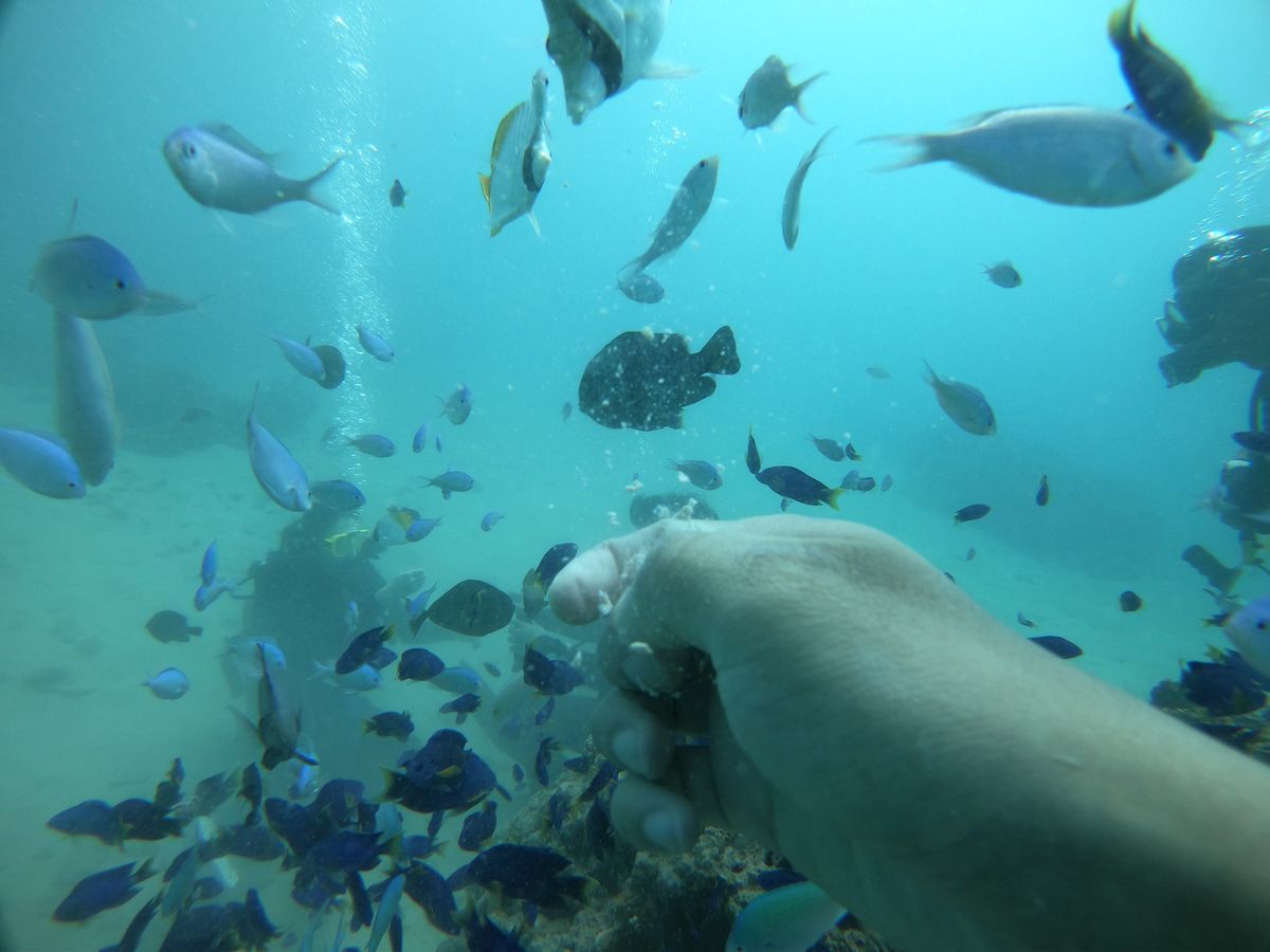 魚がたくさん寄ってきてくれてすごい綺麗でした。