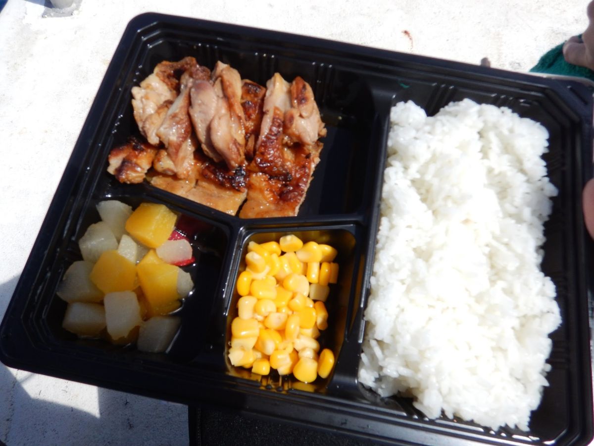 浅瀬でのダイビング終了後はお昼ご飯、美味しいお弁当付きです。