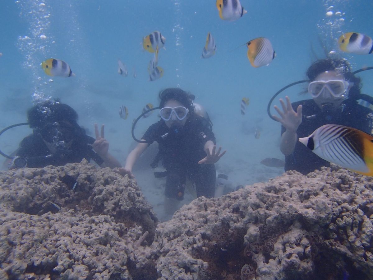 地上での説明はなく、全て海の中での説明でした。できない人は残ってもらう、というようなスパルタでしたが、海の中は本当にキレイで素晴らしかったです。