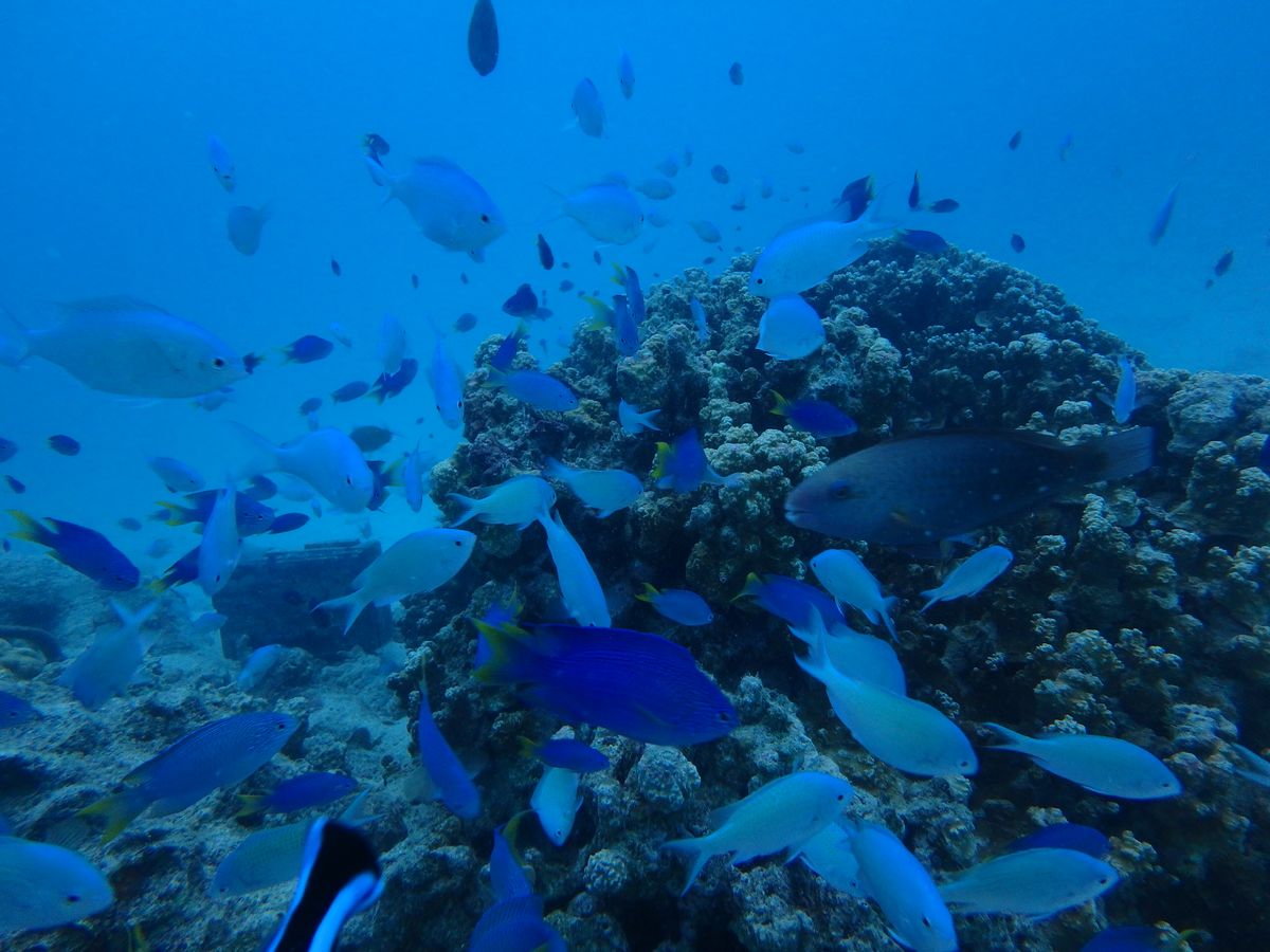 魚だらけの光景は本当に凄いのですが、水中では感嘆の声を出せないのがもどかしいです。