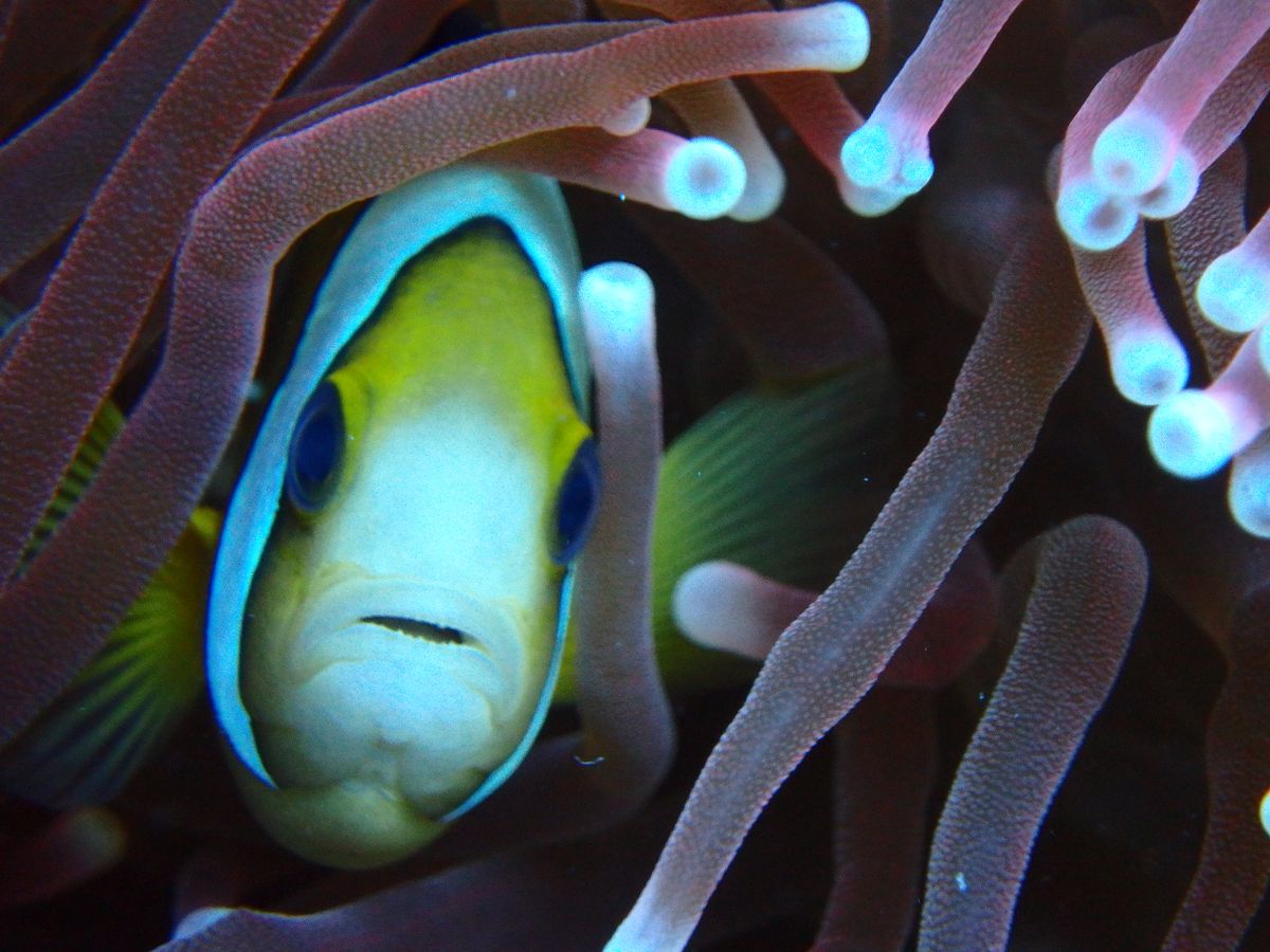 カクレクマノミなど様々な魚に囲まれながら、より深い所に潜水しました。