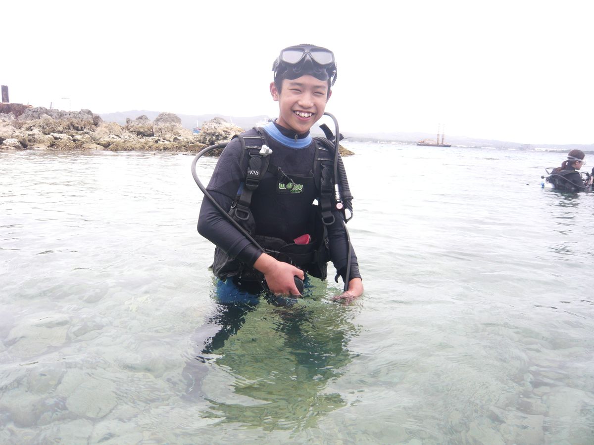 ショップでの説明中は時折鋭い目つきで睨まれたりしましたが、お父さんに刈られたあの髪型といい、ダイビングといいなかなか頼もしい11歳です。