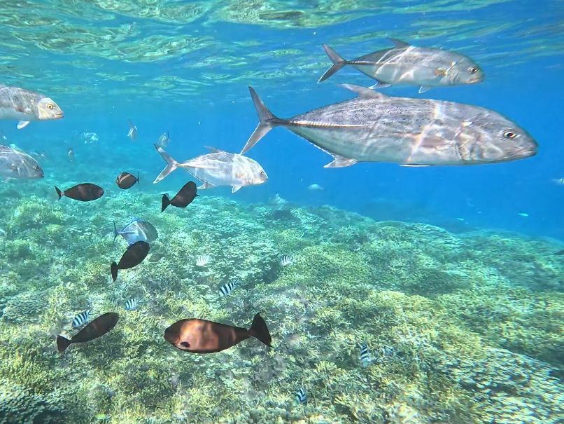 新婚旅行で奥さんと初めてスキンダイビングに参加しましたが、海が綺麗で魚もびっくりするくらい沢山いて1時間でみっちり水中を楽しむことができました!