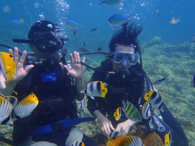 ダイビングは3年ぶり。最初は戸惑っちゃいましたが、思い出しました。やっぱり海はいいですね。それもきれいな透明な色がいいですよね。心がとてもいい気持でした。
