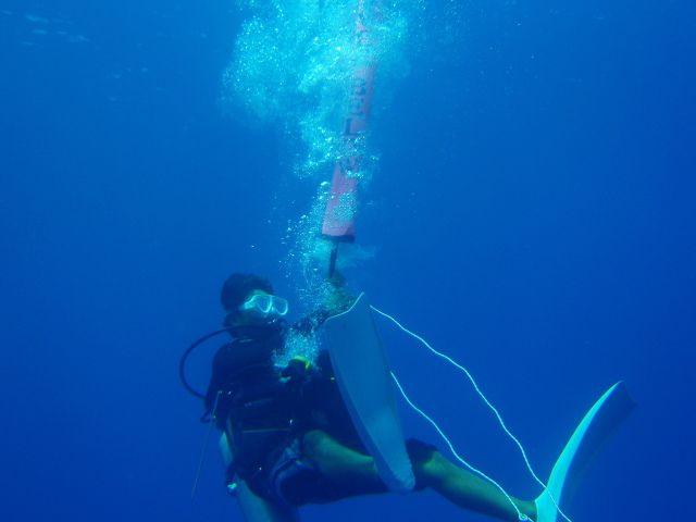 で、だんだん水面の方に上がってきたころ彼が合流。