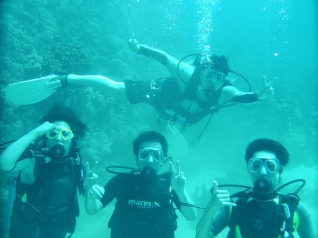 父と母と娘の3人で参加しました。父と母は初めて、父はまったく泳げませんが、どうにか潜ることができました。午前中は、つまらないが、午後のボートダイビングは、とても素晴らしく本格的にやりたくなりました。