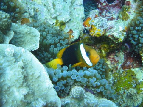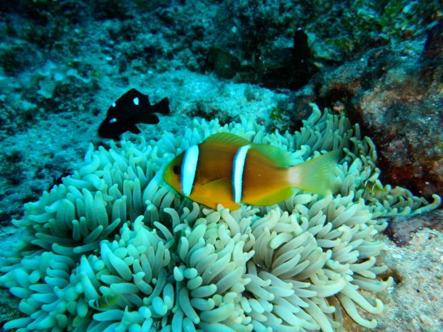 今回の体験ダイビングへの楽しみは隠れクマノミを見ることでした。午前中にビーチでの練習を兼ねたダイビングを楽しみ、お弁当を頂いた後いざボートに乗り沖合いへ....