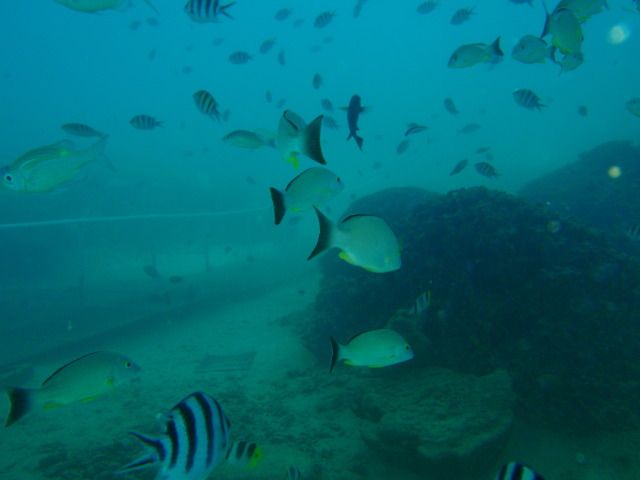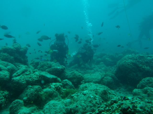 ダイビングは比較的初心者の方が多く、ゆったり潜れました。魚群は少なかったのですが、浮遊感を楽しむ私は十分楽しめました。ただ、ウエットが半袖半ズボン丈であることを知っていたら、焼かないためにも長袖を持って行ったのですが、南国ではあたりまえなのかなあ・・・。珊瑚にぶつかっちゃって、切る人もいるみたい。記載してもらえていると長袖等準備していけたかなあ。