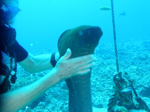 また今回のガイドさんは、ウツボと仲良しらしくいろいろなパフォーマンスを見せてくれました。(ウツボに触れるガイドさんは、グアムにも3人しかいないとか。)