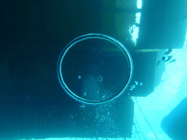 *ジェリーさんが水中で作る空気の輪はまさに芸術。3つのリングがぷかぷか浮いていきました。