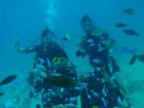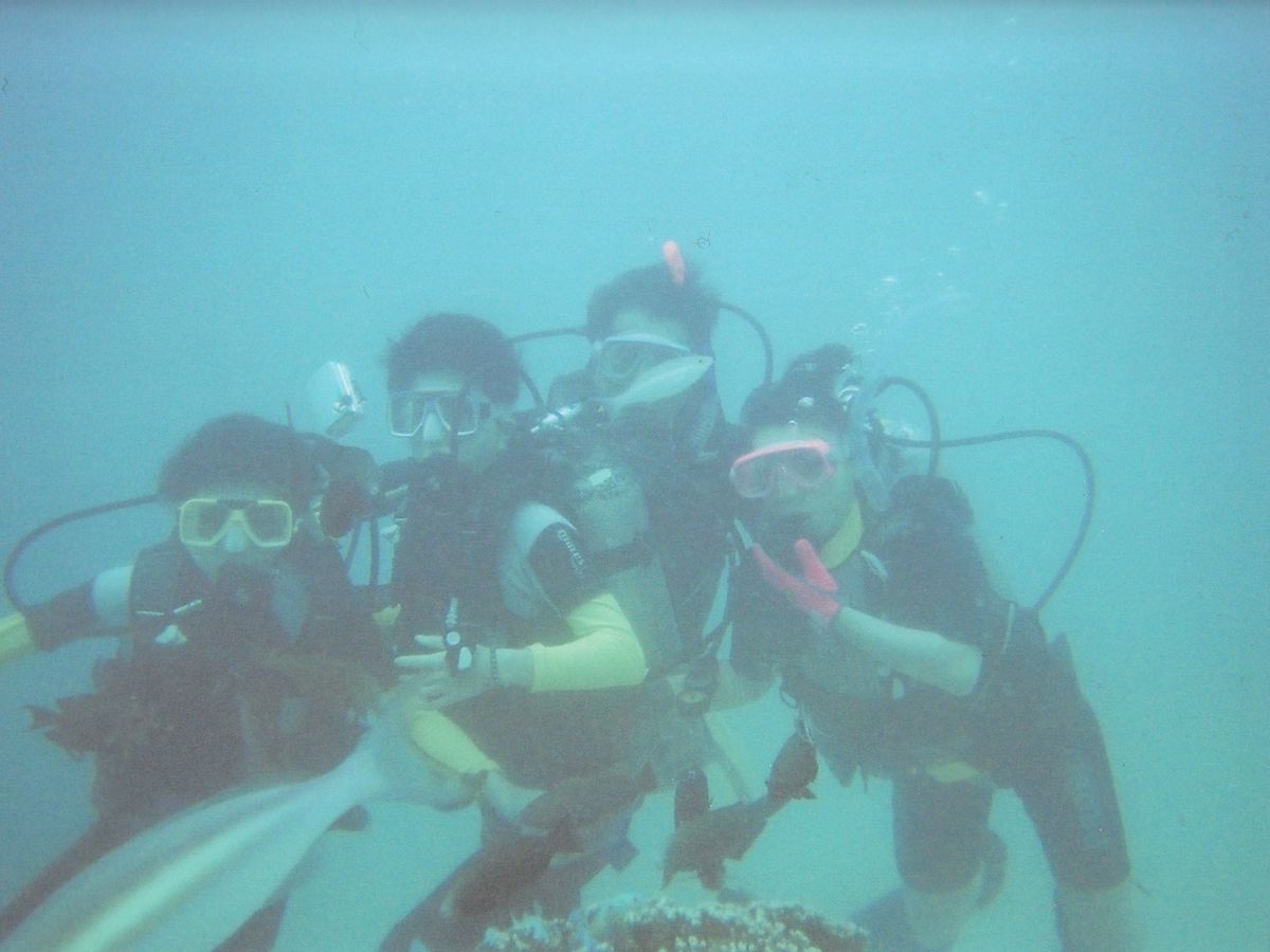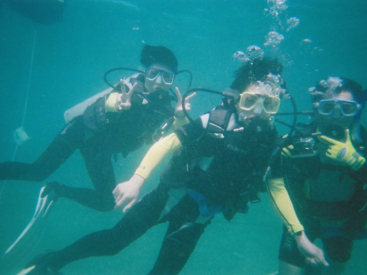 みんなダイビングは初めてでとても不安でしたが、丁寧にわかりやすく教えてもらい、時間ずっと泳いでいることができました。