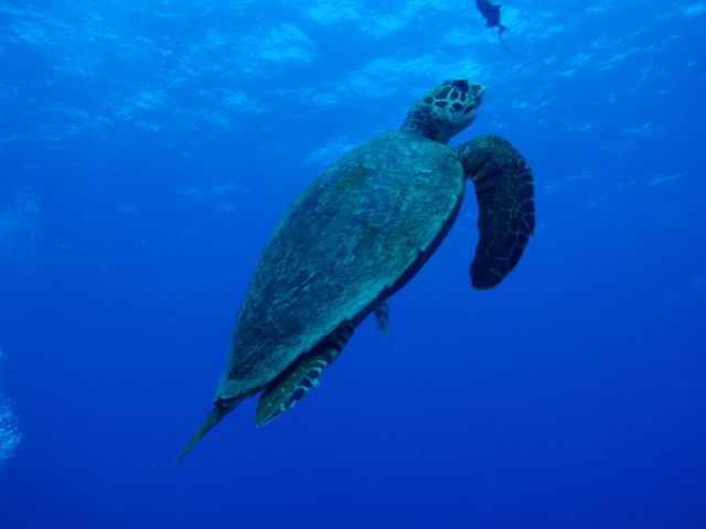 ボートダイブでちょっと緊張していたけどウミガメを見れて感動♪一緒に泳いでじっくり観察しました。