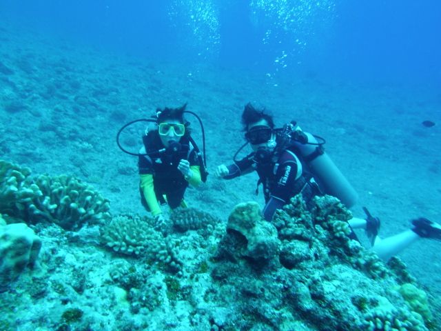 当日はYukikoさんをふたりじめ。とてもフレンドリーな方なのでちょっとした疑問も気軽に聞けるし、浅瀬での練習もしっかり出来るので安心して潜れました。
