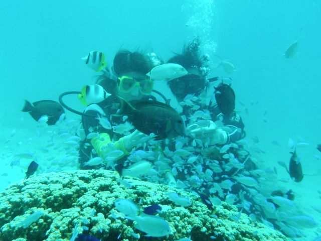 友達と2人で参加しました。私はライセンス持ちですが友達は初めてのダイビングだったので少し不安だったようですが、スタッフの方の大変親切な指導で安心して潜れていました。餌付けをし魚を間近で見れたり、写真を撮ったり、また体験ダイビングでも思ってた以上に深いところまで潜れたので、とても満足でした。ダイビング中に撮って頂いた写真と動画をお家のパソコンで見るたび楽しい思い出がよみがえります!