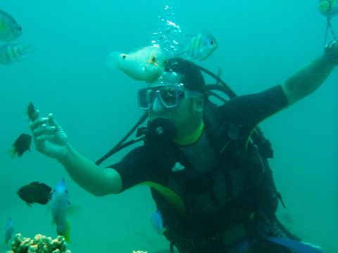 初めてだったので緊張しましたが、何とか潜ることが出来ました。丁寧に指導してもらい助かりました。相方が体調不良だったので一人で午前中だけビーチで体験しましたが、楽しかったです。ボートで昼からも行けたらもっと奇麗なところが見れたのではないかと思います。またチャレンジしたいと思います。最後に記念撮影で撮った写真をCD-Rに焼いてくれて後日もらいました。これも良かったです。
