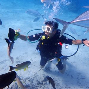 ブルンクがあったので不安でしたが、日本人のお姉さんが優しく教えくれました。珍しい魚に出会いながらブルーホールと沈船に潜り、気分はリトル・マーメイドでした。最高!また行きたいです!