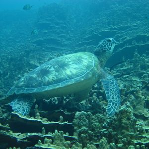 2本目はバラクーダロック。ナンヨウハギの幼魚が癒してくれたり、ガイドさんの案内で老眼の私にもカミソリ魚をみることが出来ました。最後に「また会いましょう」とアオウミガメが挨拶に来て、無事終えることが出来ました。グアムでの楽しみが増えました。ありがとうございました。