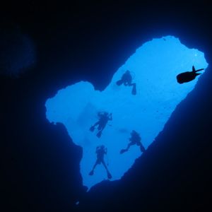 初めてのグアムダイビング。1本目はブルーホール。太陽の光が差し込む光景を想像したらなんと幻想的なのかと。この日は残念ながら下からハート型の地形をのぞくことになりました。