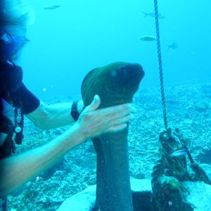 また今回のガイドさんは、ウツボと仲良しらしくいろいろなパフォーマンスを見せてくれました。(ウツボに触れるガイドさんは、グアムにも3人しかいないとか。)