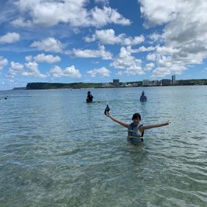 カヤックで沖に出る予定でしたが波が高くて出られず、また水中も濁ってしまい2ダイブの予定が1ダイブになってしまいました。ですが、スタッフの方々はみんな優しく、カヤックで遊んだり海で遊んだり、昼食の準備など十分過ぎる対応に感謝しています。グアムの楽しい思いでの一つになりました!