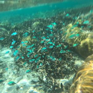 体験する前は浅い場所でのダイビング だと魚など少ししかいないだろうと思っていましたが、潜ってみると想像以上にたくさんの綺麗な魚を見ることができました!