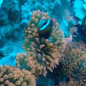 50センチ位のナンヨウツバメウオの群れ、赤いイソギンチャクに棲んでいるダスキーアネモネフィッシュ、海綿の一種エレファントイヤーなどを見る事ができ、楽しい時間が過ごせました。