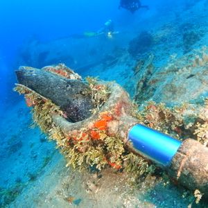 また、現在はサンゴや海の生き物の棲み家になっている円形のコンクリート建造物が水中では多く見られました。おそらく、太平洋戦争に使っていた砲台の跡地かもしれません。平和になった今は、生き物たちが暮らす土台になっているのだと考えると、改めてダイビングをするときの視点が変わると思います。