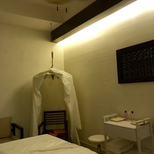 最初にカウンセリングがあり、チェックをしました。4種類の香りのオイルを持ってきて、その時の自分の気分で好きな香りのオイルを選べます。部屋は綺麗で、きちんと洋服を掛けたりする場所や、荷物の置き場があり、セキュリティも完璧でした。