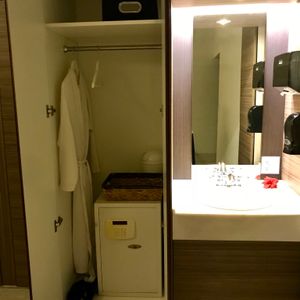 空港までの送迎付きプランでトランクや貴重品をどうするのか心配でしたが、トランクはヒルトンのベルデスクで保管、貴重品は着替えるところにホテルの部屋にあるような金庫があり杞憂に終わりました。