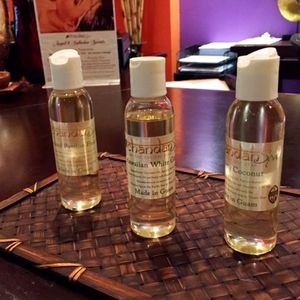 到着すると、まず簡単なカルテを記入し、重点的にマッサージをしてほしい場所、してほしくない場所、マッサージの強さの希望などを記入します。その後、オイルマッサージの際に使用するオイルを3種類の中から選ぶことができます!どれもいい香りで迷いましたが、パッションフルーツの香りを選んで部屋へ、、、