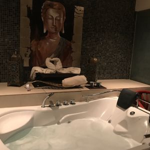 60分のマッサージ後は部屋の中にあるジャグジーの湯舟に30分間入ることが出来ます。(時間が分かるように時計を置いて行ってくれるので安心です!)温度はちょっとぬるめでしたが、出る頃にはじんわり汗をかく感じでした。ジャグジーに入っている途中でまたジンジャーティーを持ってきてくれてよりポカポカになったような気がします。