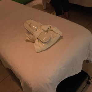 今回は友人と2人で予約しました。同室のベットでトリートメントが行われハンドで60分でした。4種類のオイルから自分自身で選び、選んだオイルで施術をして頂きます。施術後に、スチームかジャグジーバスか選択し30分という流れになります。とてもリラックス効果とむくみを解消することが出来ました。ワッフル生地のスリッパがが良かったです。静かなお部屋で、優雅な時間を過ごせます。また行き帰りのタクシー送迎があるので、ノーメイクでも大丈夫ですよ(^.^)