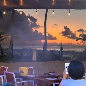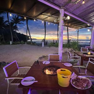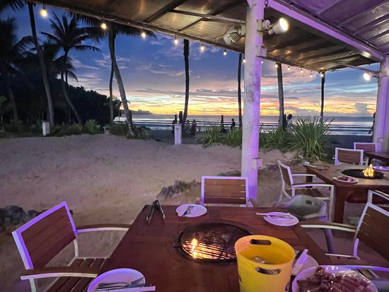 海の目の前のBBQは雰囲気がとてもよく、夕方のサンセットがとてもきれいでした。暗くなると、ファイヤーショーが始まり、みんな大盛り上がりで楽しかったです。食事もボリュームがあって普通に美味しかったです。
