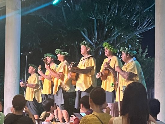 生でタヒチアンのダンスが見れて楽しかった。ご飯も美味しかった、特にポキが最高でした。優先席じゃなくても十分近くで見れた。