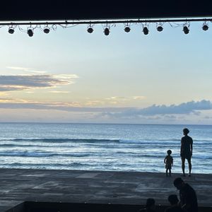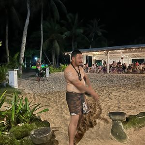 サンセットを見ながらご飯を食べてると、子供たちにヤシの葉で作った冠をくれました。ステージでは踊りのレクチャーもしてました。