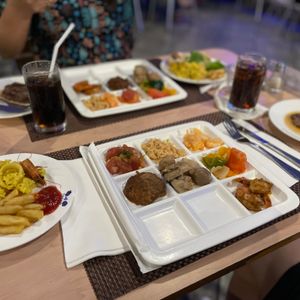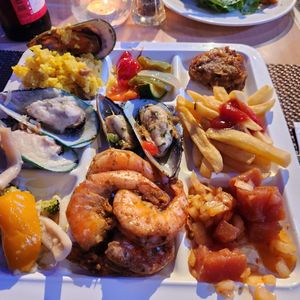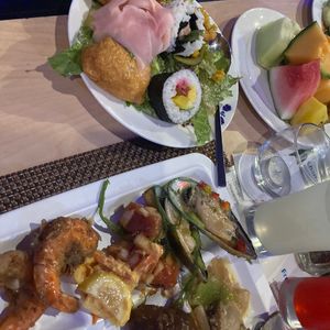 バイキング形式なのであまり期待してなかったけどお寿司やステーキがあり結構美味しかったです。スパークリングワインをボトルで注文してステージを見ながらのお酒は最高でした。2歳と4歳の子どもも真剣に見て、後日、また行きたいと言ってました