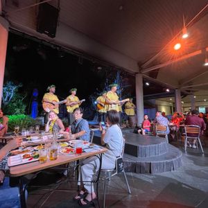最初の1時間くらいでBBQを楽しみ、1時間くらい経った頃から30分程度のショーが始まります。ショーが終わると観客も参加してみんなで踊る感じになり、最後はダンサーさんとの記念撮影タイムになります。