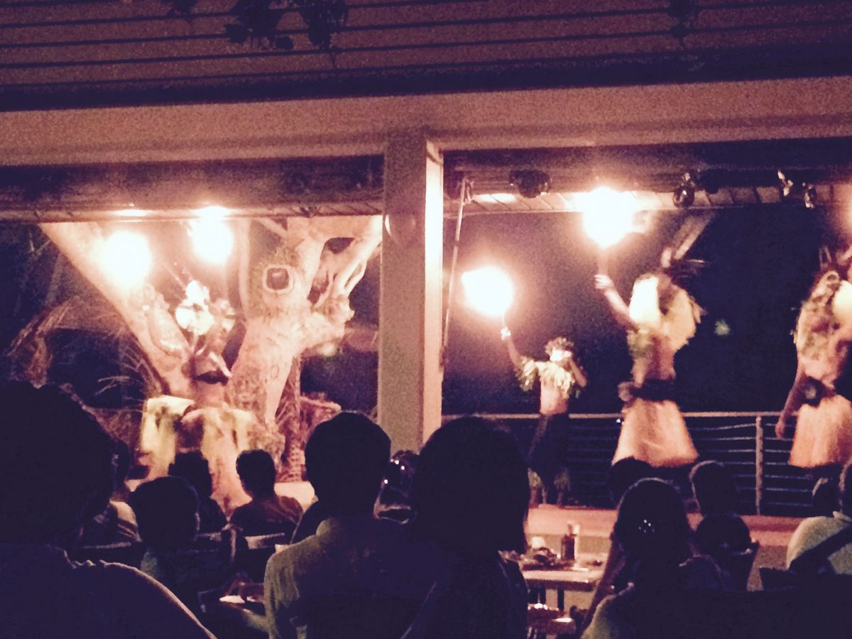 ポリネシアンショーは賑やかで食事も美味でしたが、観客席の一番前の真ん中に太い柱があり、せっかくのショーが半分で切断されている感じ。