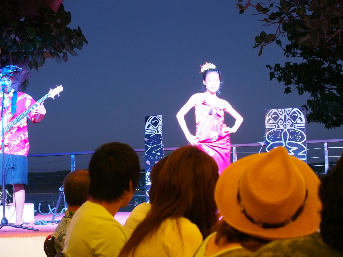 テンポの良い曲に合わせてファイヤーダンスやフラダンスなどどんどん場面が変わっていきます。途中てお客さんの数名はお兄さんお姉さんに手を引かれステージに上がり一緒に楽器を演奏したりダンスをしたりして盛り上がりました。私は楽器を演奏して楽しかったです♪友人はココナッツの生搾りをご馳走してもらっていました(^^)