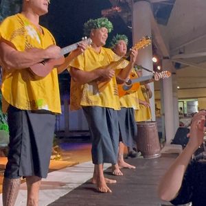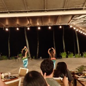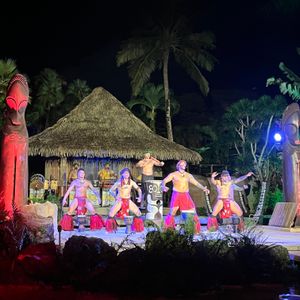 グアム最後の夜にグアムらしさをと思い、参加しました。ショー優先席でしたが、柱があり全体が見れず少し残念でした。これなら、普通の席でもよかったかもと思いました。料理は、他の人の体験談通り美味しかったのですが、デザートとかは、早めに取っておかないと全然残っていませんでした。ショーが始まるまで少し待ちましたが、始まってからは、とても楽しめる内容でした。一度は参加してもいいと思います。