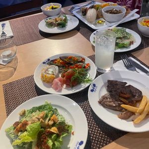 ショーが始まるまでの30分程で食事を済ませた方がいいです!始めると暗くなってしまい焼き加減が分からなくなるため不安です😥バイキングの食べ放題も美味しく、ビールも飲み放題だったのがとても良かったです!
