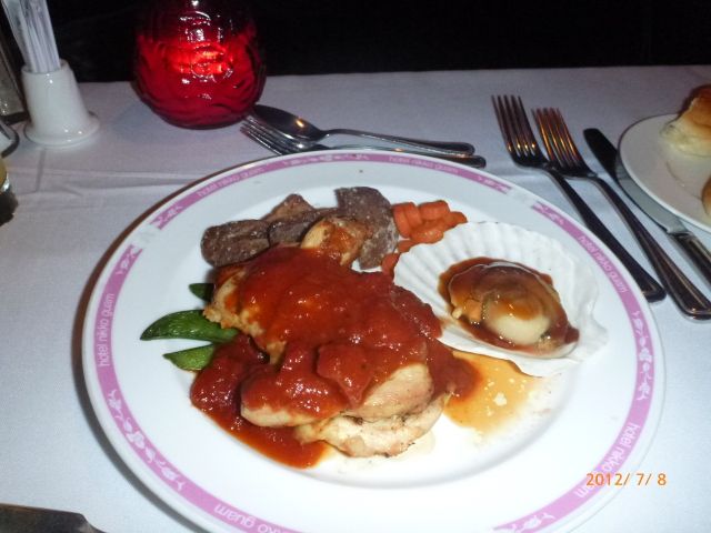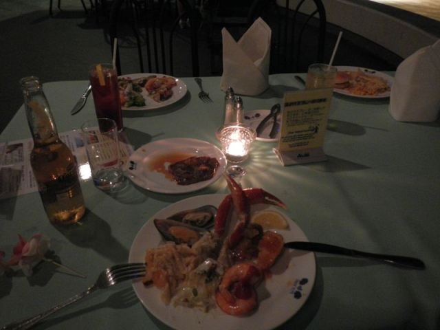 口コミで、「Aran1.netさんで早く申し込んだら、最前列が取れました」と書かれてありましたので、グアム旅行が決まって直ぐに(3~4カ月前に)予約を入れました。料理は一番安いものです。