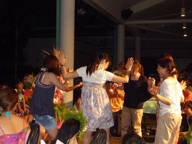 ショーも佳境かなってところで踊り子達が客席に歩み寄り、長女を連れて一緒にポリネシアンダンス!思わぬ事態に娘も乗りのり!良い思い出写真が撮れたぞと喜ぶお父さん。