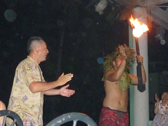 定番ではありますが、一度は見ることをお勧めします。でもただ食べて飲んでいてはダメ。途中、ゲスト参加型のプログラムがありますので、恥ずかしがっていてはいけません。旅の恥は掻き捨てろと言うことで、是非、前方へ行って、参加希望の挙手をし、ダンシングして下さい。またはメラメラと燃え盛る火の玉をお口に持って行きましょう(笑)