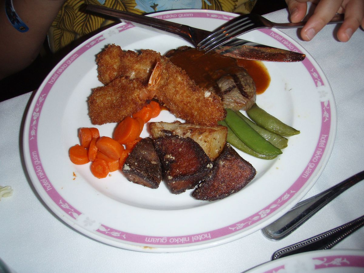 上から2番目のコースを選択しましたが、肉はあまりおいしくはなかったです。ホイル包みのじゃがいもは絶品でした。それ以外は普通レベルです。飲み放題でショーも見れるので、コストパフォーマンスは悪くはないと思います。ニッコーに宿泊するならば、次回も選ぶと思います。