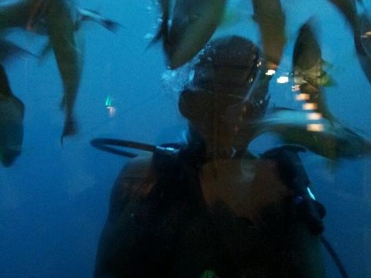 ダイバーの方がエサをまいて、