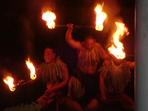 ファイヤーダンスでは最大の見せ場の三人でみっつの火の輪を作るところでひとりの火が消えてしまい、ダンサーの方、気の毒でした。でも全体的にはすばらしいショーでしたよ。