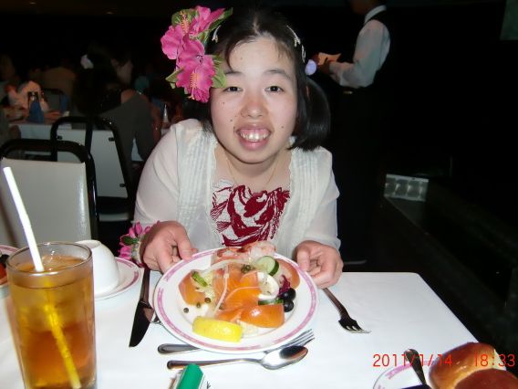ツアーの皆さんが一斉に到着したので、バイキングは大混雑でしたが、ショーは一部参加型で、息子と弟がダンサーの方に誘われて、一緒にダンスしました。楽しい思い出になりました。