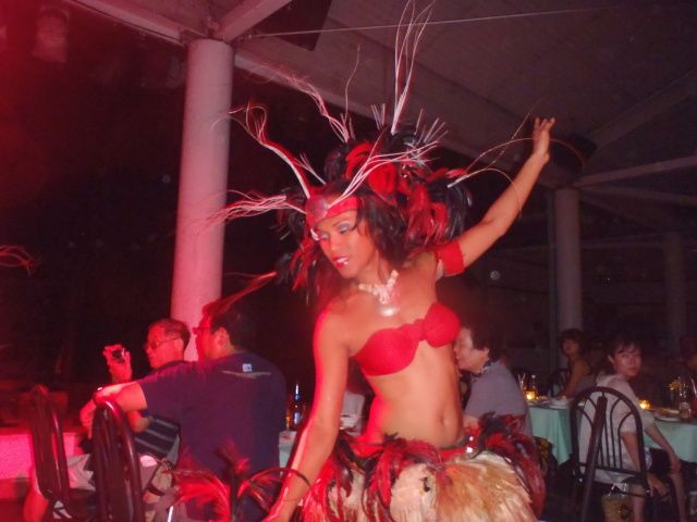 サイパンでも同じようなディナーショーを体験しましたが、今回は雨が降ったこともあり、自分たちの席の横で、ダンスやパフォーマンスをおこなってくれたので、最高の思い出になりました。