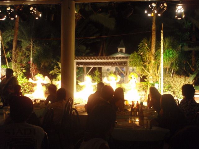 ショーは、女性の方のフラダンス、男性の方の炎や剣のパフォーマンスでした。